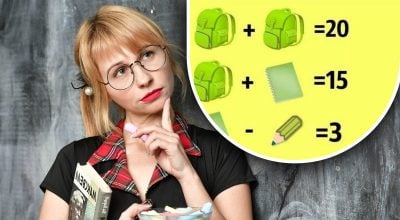 Och här är det rätta svaret att kontrollera: först ser vi att två påsar är lika med 20, därför är en påse lika med 10. I ekvationen ”Väska + anteckningsblock = 15” visar ersättningen av väskans värde att anteckningsblocket är lika med 5. Om däremot ”Anteckningsblock – Penna = 3” betyder det att pennan är lika med 2. Därför ser den sista ekvationen ut så här – ”Väska – Penna × Anteckningsblock” beräknas som 10 – (2 × 5) = 0.