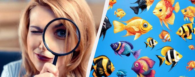 På bilden nedan ser du olika fiskar, men en av dem kommer att skilja sig från de andra. Din uppgift är att identifiera den. Detta pussel kommer att utmana din hjärna och testa hur snabbt du kan upptäcka detaljer.