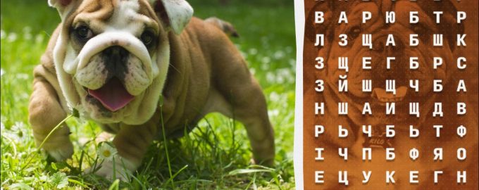 Försök hitta ordet ”bulldog” / Moje collage, foto av depositphotos.com