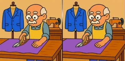 I ett annat visuellt pussel måste du hitta tre skillnader mellan två illustrationer som visar en farfarsstjuv som klipper tyg med en sax, skriver jagranjosh.
