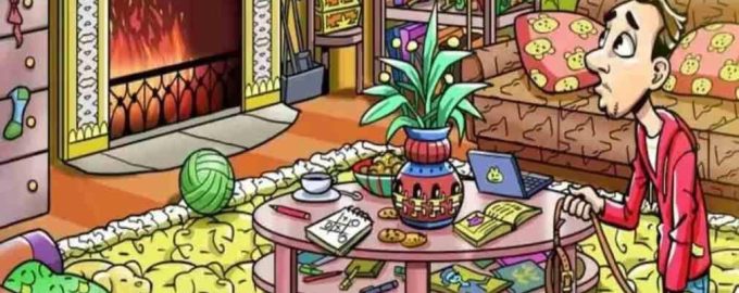 Ta en titt på den här bilden av en man i ett vardagsrum. Försök att hitta den gömda hunden på 10 sekunder. Lägg märke till att det finns många små detaljer i bilden som kommer att avleda din uppmärksamhet från att hitta den fyrbenta mannen.