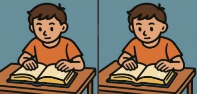 Ta en titt på två bilder av en pojke som läser en bok. Vid första anblicken ser bilderna likadana ut, men titta närmare. Det finns 3 små skillnader. Tror du att du kan hitta dem alla på bara 49 sekunder? Låt oss se hur skarp du är!
