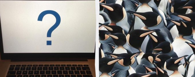 Vi måste hitta en skata bland en hög med pingviner / collage Moje