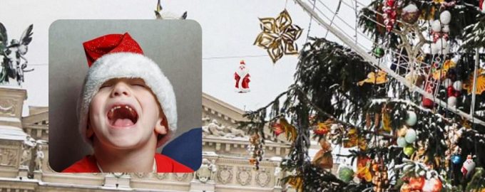 Nedan är ett foto av en majestätisk julgran dekorerad med olika leksaker. Fotografens lins fångade kransar, dekor i form av godis och stjärnor, samt 11 små figurer av Father Frost.