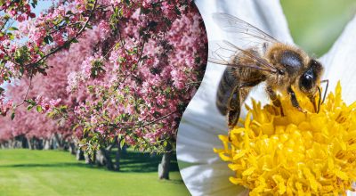 I den här optiska illusionen måste du hitta tre bin som försöker vara osynliga bland de rosa träden, skriver Glavred.