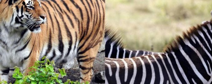 Naturen har skänkt dessa rovdjur kamouflagefärger, vilket hjälper dem att gömma sig väl bland de vilda djuren när de jagar byten. Därför måste du vara mycket försiktig för att upptäcka den randiga tigern bland de likadant randiga zebrorna. För att göra pusslet ännu mer komplicerat visar bilden en vit tiger i stället för den vanliga orange och svarta tigern.