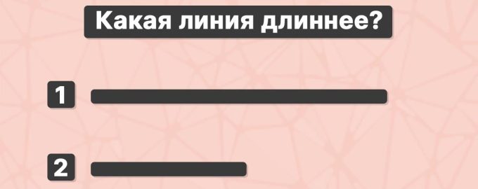 Detta pussel förvirrar många människor. Du måste avgöra vilken av de två linjerna på bilden som är längst. Vid första anblicken verkar svaret uppenbart – remsa 2 ser mycket kortare ut. Men allt är inte så enkelt – den här uppgiften har en hake.