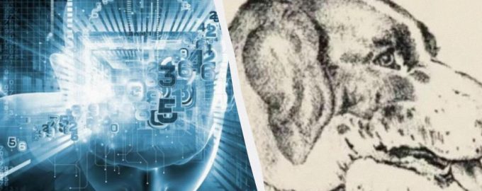 Ett mänskligt ansikte var på en hunds öra / teckning safalta.com