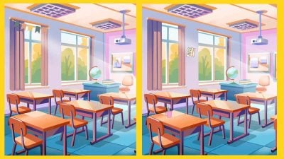 Bilden föreställer ett skolklassrum och du har bara 12 sekunder på dig att hitta fyra skillnader mellan de två bilderna. Den här visuella uppgiften testar din observationsförmåga, uppmärksamhet och koncentration under stress och tidspress.