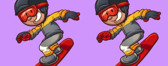 Du måste använda all din uppmärksamhet för att hitta tre väl dolda särskiljande detaljer. Länk kopierad Var är de tre skillnaderna mellan killar som snowboardar